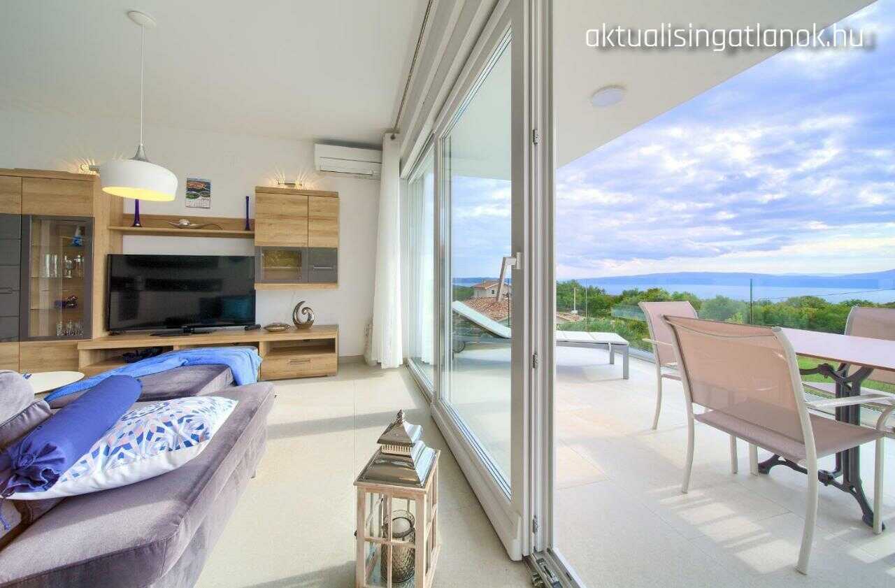 380 000€ Krk Linardići földszinti 2 szoba+nappali, 2 fürdőszobás apartman tengeri kilátással