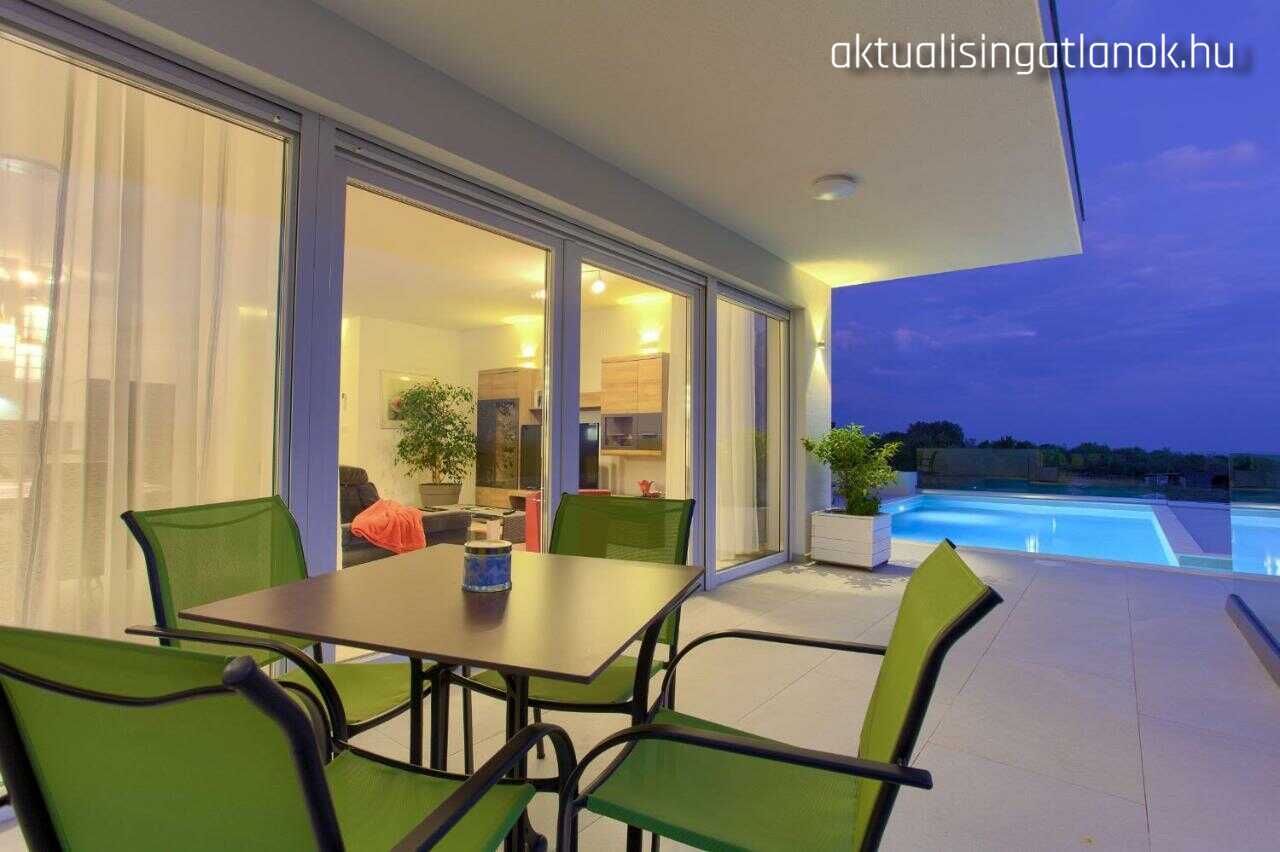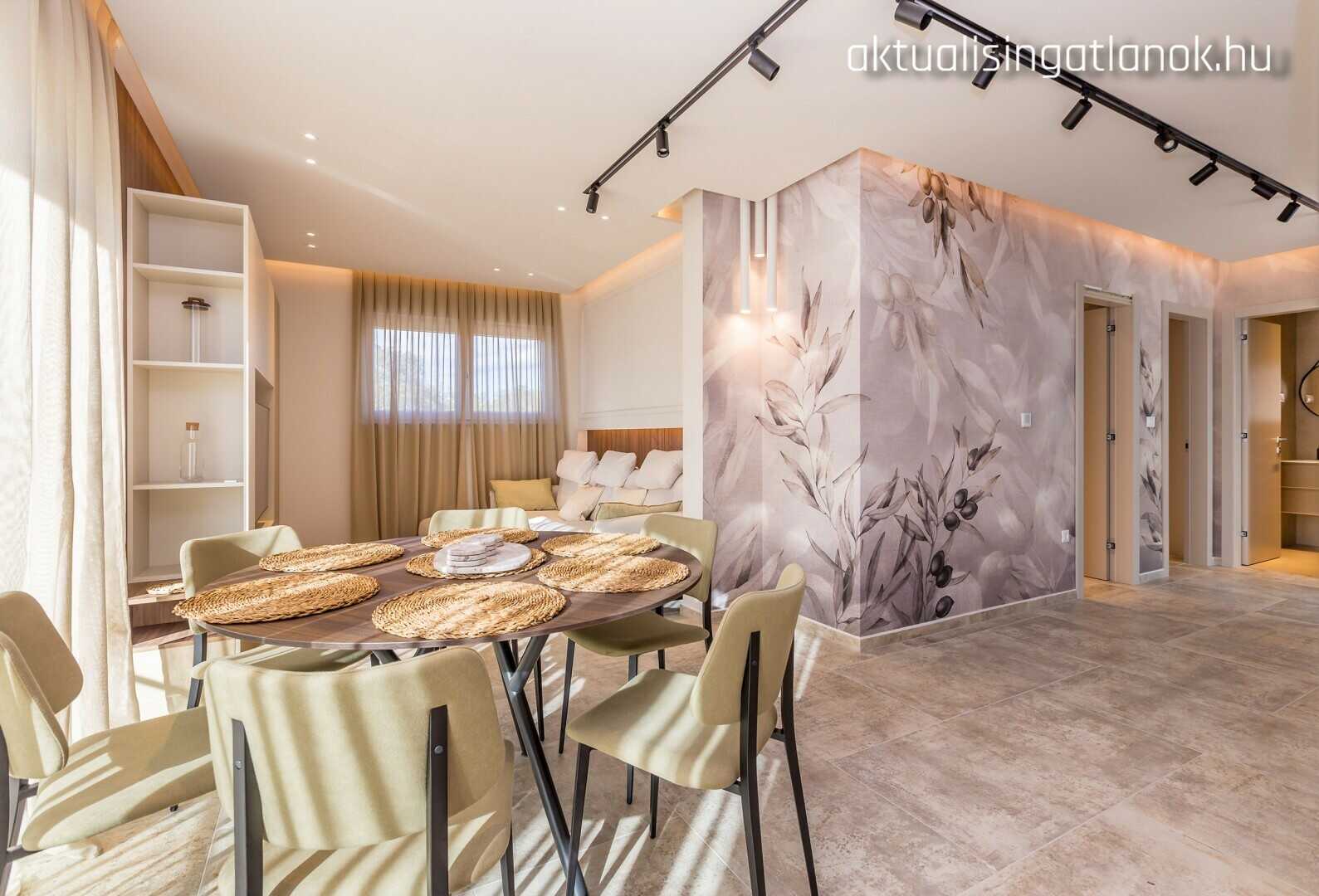 Az alsó szinten egy tágas, nyitott stílusú, világos nappali étező-konyha, és három elegánsan berendezett hálószoba található, mindegyik saját fürdőszobával. A felső szinten két luxus hálószoba található saját fürdőszobával. Az alsó szintről egy , 46 m2-es terasz nyúlik ki,...