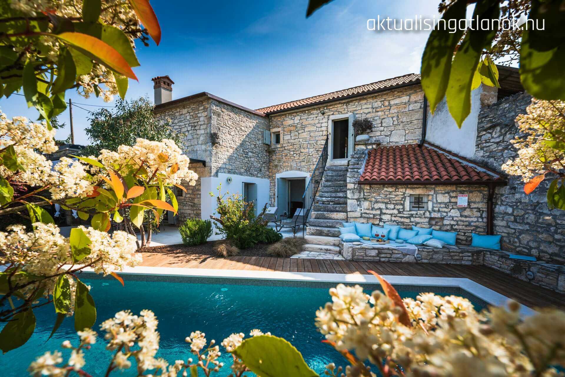 A két teljesen felújított kővilla Burići kisvárosában található, Kanfanar szívében. A ház az épülettel együtt 210 m2-es, 300 m2-es telekkel. A nagy ház egy földszintből és két emeletből áll. A másik épület egyszintes. A 2 épület kizárólag együtt, egyben eladó.